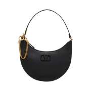 Valentino Mini Vlogo Signature Grainy Calfskin Hobo Bag Black