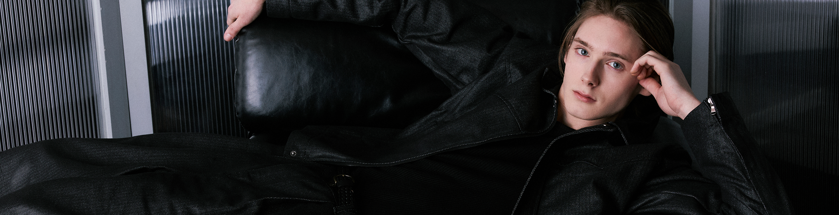 웨슬리휴스턴 옵시디언 딥턱 디테일 레더 자켓 블랙