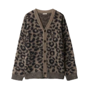 - Aviemuah Leopard Mohair V-Neck Cardigan Beige