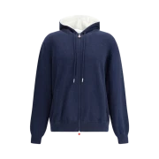 Kiton Zip-Up Hooded Drawstring Cardigan Navy