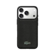LCHMP17LPLAK LACOSTE HARD ICONIC PETIT PIQUE PU LACQUER LOGO MAGSAFE CASE Phone 17 Pro BLACK