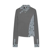 OJ25FWTS002CC OJOS Mock Neck Tee Charcoal
