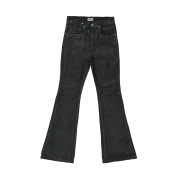 smallstupidtunes Waxed Flare Denim Pants Black