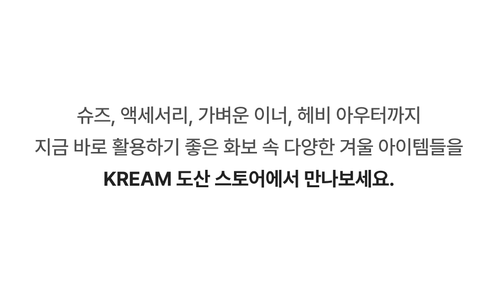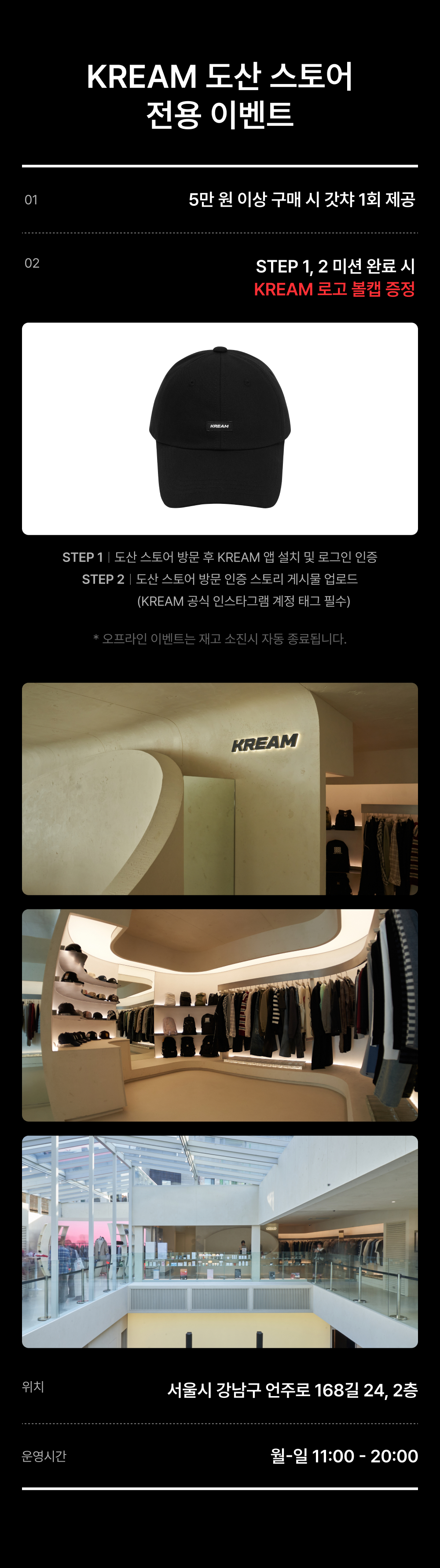 크림(주)는 통신판매 중개자로서 통신판매의 당사자가 아닙니다. 본 상품은 개별판매자가 등록한 상품으로 상품, 상품정보, 거래에 관한 의무와 책임은 각 판매자에게 있습니다. 단, 이용약관 및 정책, 기타 거래 체결 과정에서 고지하는 내용 등에 따라 검수하고 보증하는 내용에 대한 책임은 크림(주)에 있습니다.