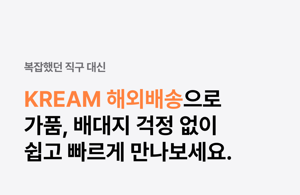크림(주)는 통신판매 중개자로서 통신판매의 당사자가 아닙니다. 본 상품은 개별판매자가 등록한 상품으로 상품, 상품정보, 거래에 관한 의무와 책임은 각 판매자에게 있습니다. 단, 이용약관 및 정책, 기타 거래 체결 과정에서 고지하는 내용 등에 따라 검수하고 보증하는 내용에 대한 책임은 크림(주)에 있습니다.