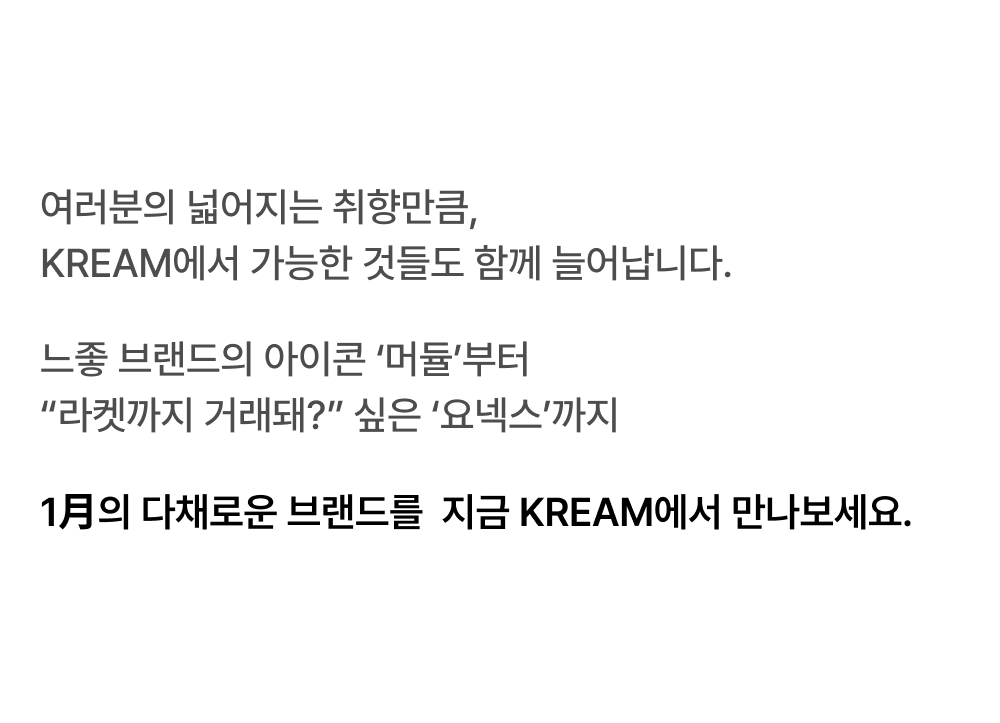 - 크림 주식회사 · 대표 김창욱사업자등록번호 : 570-88-01618 사업자정보확인통신판매업 : 제 2021-성남분당C-0093호사업장소재지 : 경기도 성남시 분당구 분당내곡로 131 판교테크원 타워1, 7층호스팅 서비스 : 네이버 클라우드 ㈜전화 : 1588-7813이메일 : help@kream.co.kr