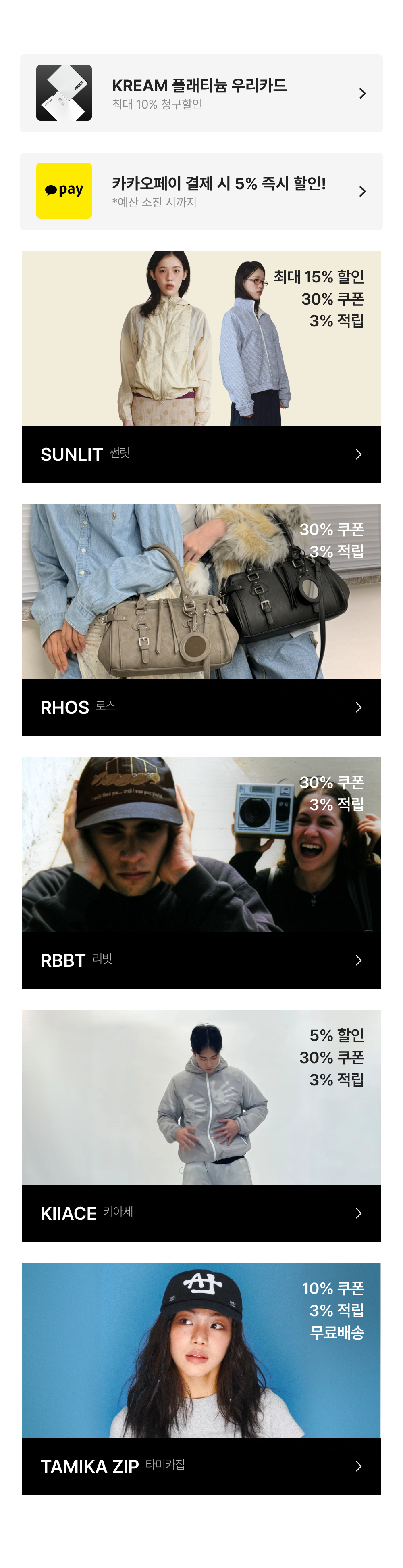 - 크림 주식회사 · 대표 김창욱사업자등록번호 : 570-88-01618 사업자정보확인통신판매업 : 제 2021-성남분당C-0093호사업장소재지 : 경기도 성남시 분당구 분당내곡로 131 판교테크원 타워1, 7층호스팅 서비스 : 네이버 클라우드 ㈜전화 : 1588-7813이메일 : help@kream.co.kr
