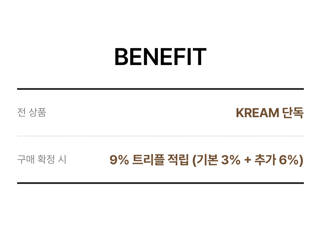 크림(주)는 통신판매 중개자로서 통신판매의 당사자가 아닙니다. 본 상품은 개별판매자가 등록한 상품으로 상품, 상품정보, 거래에 관한 의무와 책임은 각 판매자에게 있습니다. 단, 이용약관 및 정책, 기타 거래 체결 과정에서 고지하는 내용 등에 따라 검수하고 보증하는 내용에 대한 책임은 크림(주)에 있습니다.