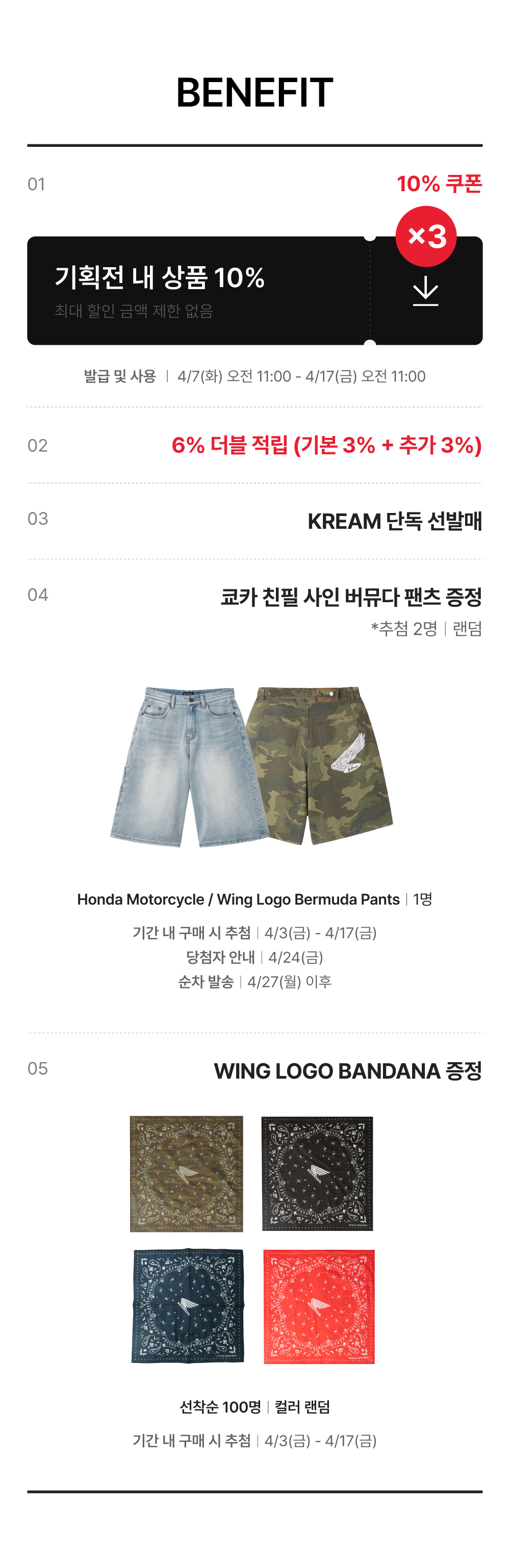 4/3(금) - 4/17(금) 기간 내 혼다 모터사이클 어패럴 상품을 구매한 고객(구매확정 건 기준)에 한해 당첨 자격이 주어집니다.