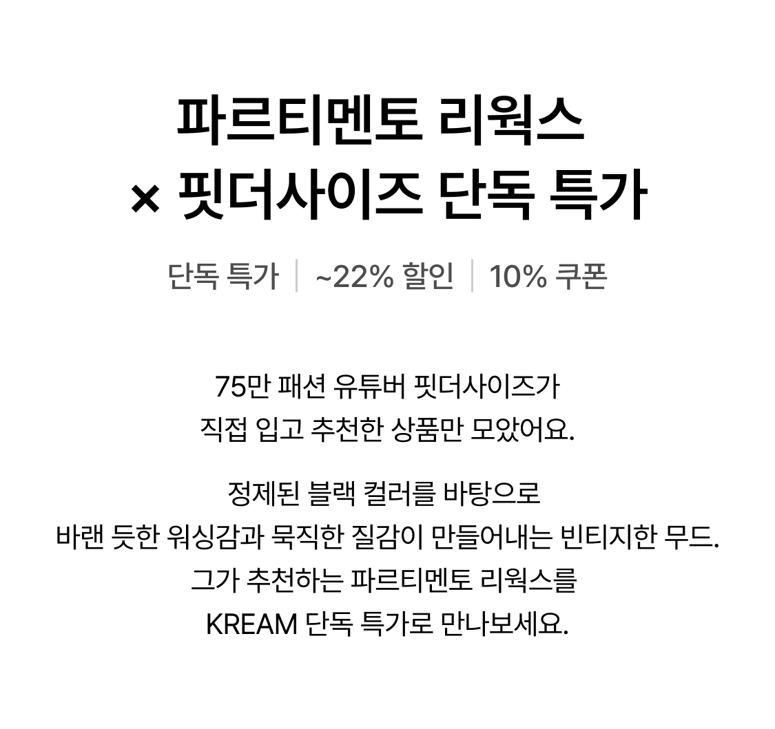 크림(주)는 통신판매 중개자로서 통신판매의 당사자가 아닙니다. 본 상품은 개별판매자가 등록한 상품으로 상품, 상품정보, 거래에 관한 의무와 책임은 각 판매자에게 있습니다. 단, 이용약관 및 정책, 기타 거래 체결 과정에서 고지하는 내용 등에 따라 검수하고 보증하는 내용에 대한 책임은 크림(주)에 있습니다.