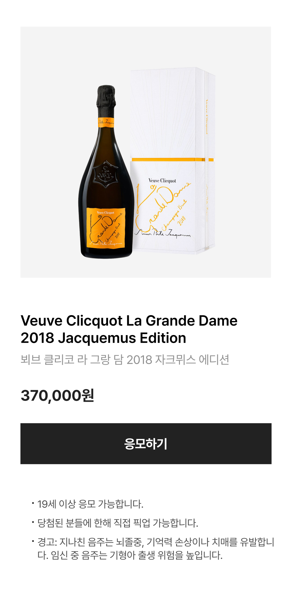 본 상품은 19세 이상 응모 가능하며, 당첨 시 직접 픽업하는 상품입니다.