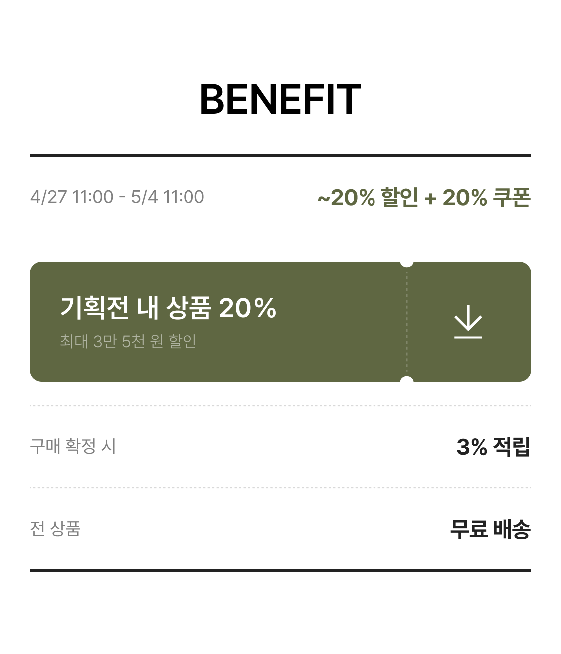 각 쿠폰은 발급 기간 내 계정 당 1회씩 총 2회 다운 가능합니다.