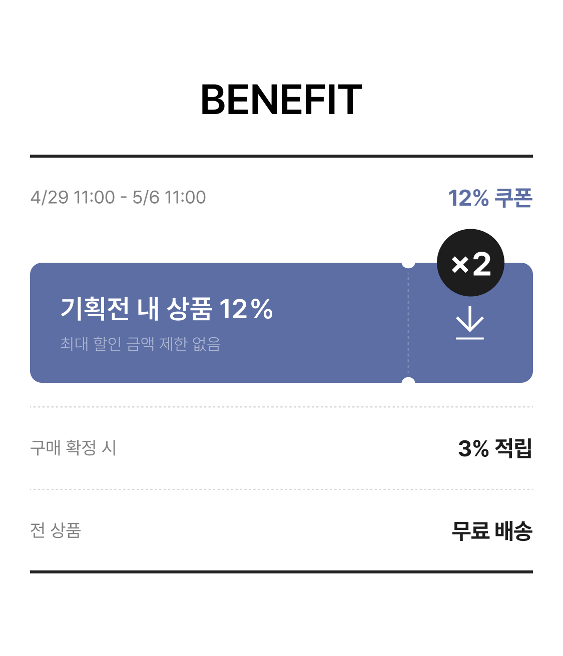쿠폰은 발급 기간 내 계정 당 1회 다운 가능합니다.