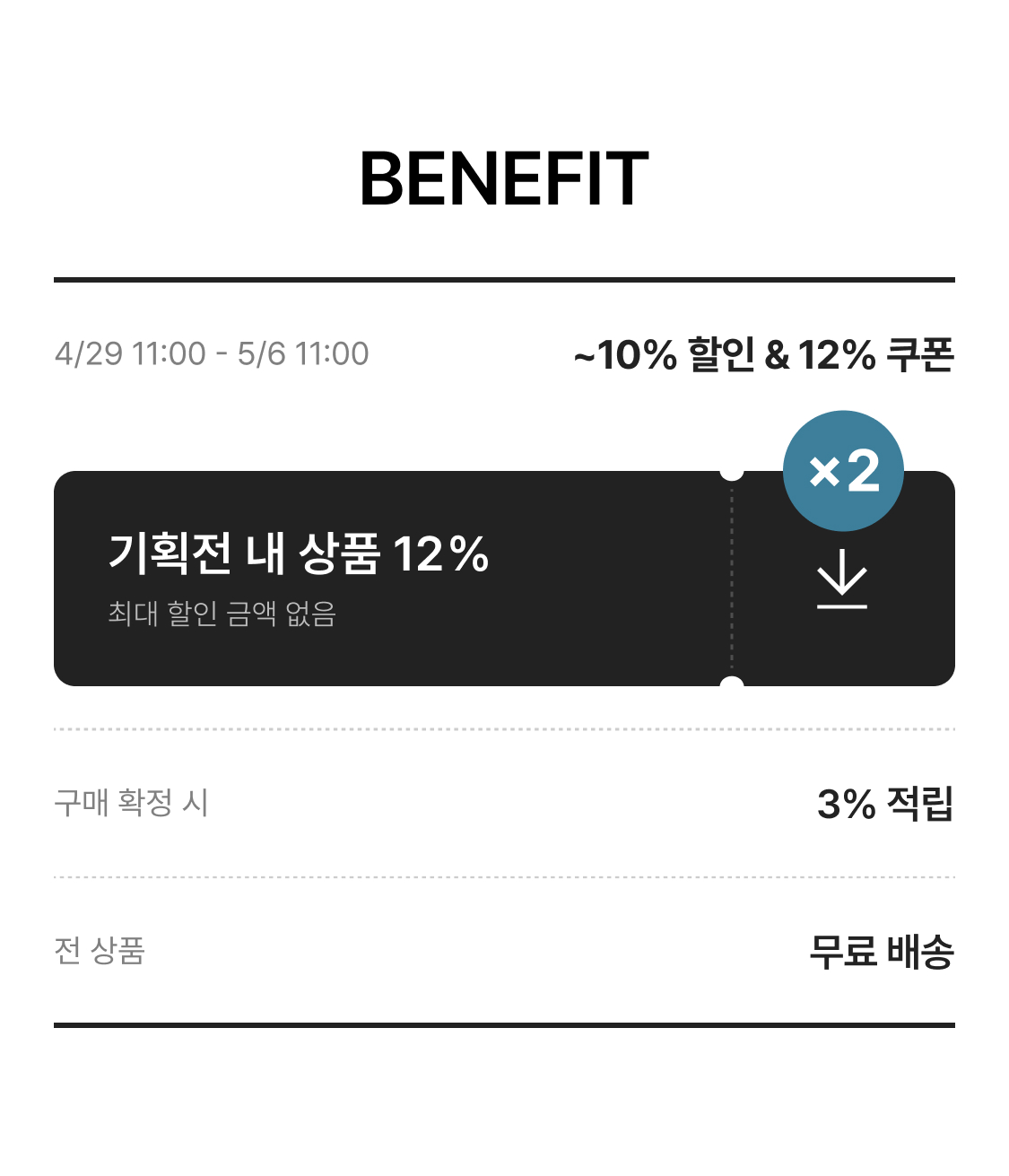 쿠폰은 발급 기간 내 계정 당 1회 다운 가능합니다.
