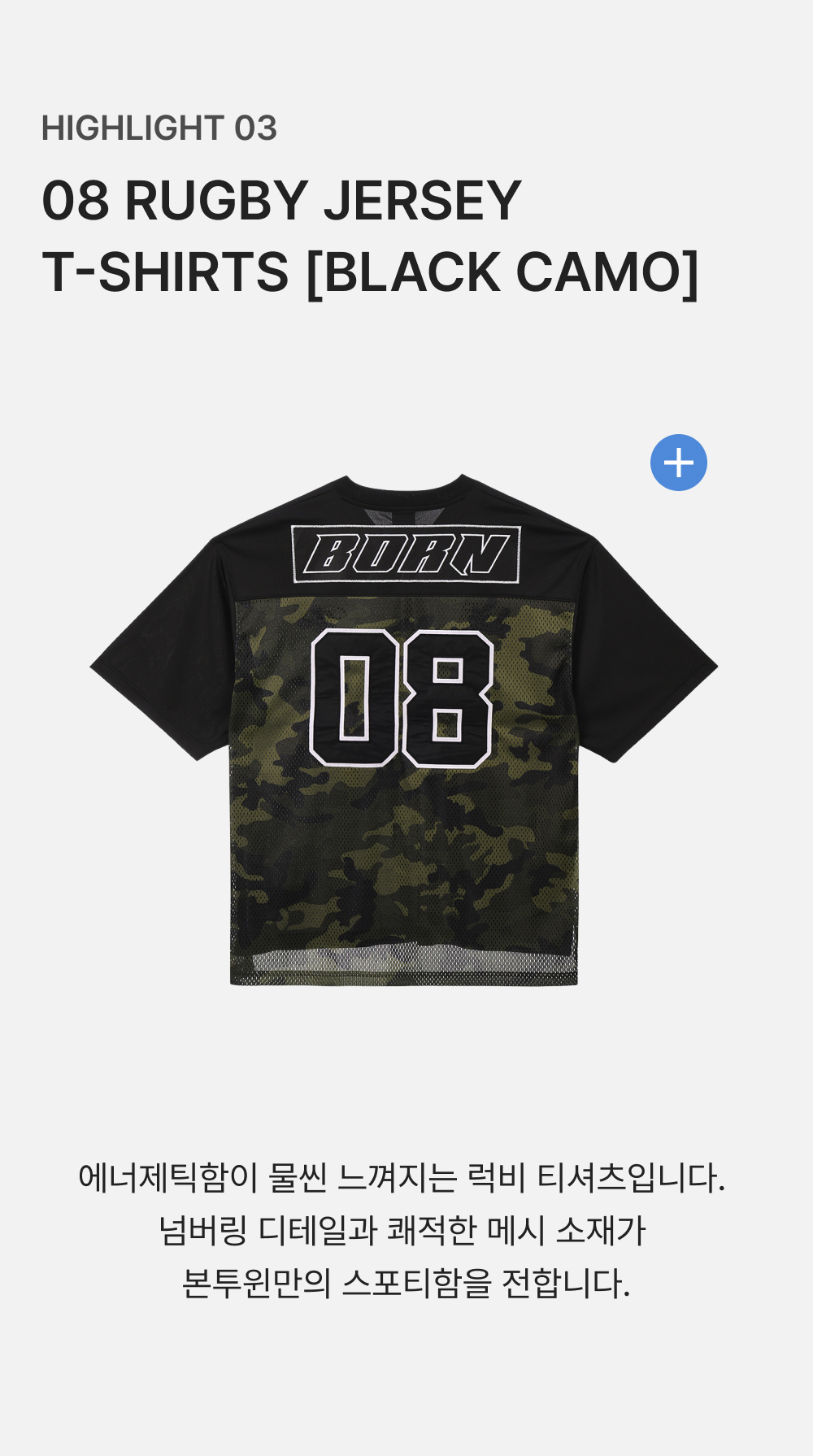 본투윈 08 럭비 저지 티셔츠 블랙 카모