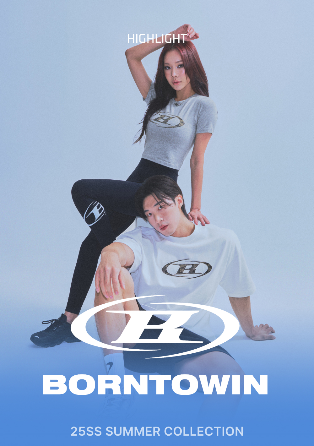 본투윈 우먼스 카모 B로고 세미 크롭 티셔츠 멜란지 그레이