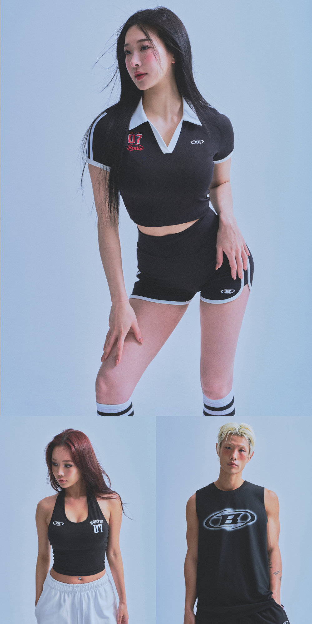 본투윈 우먼스 BRNTW 카라 크롭 티셔츠 블랙