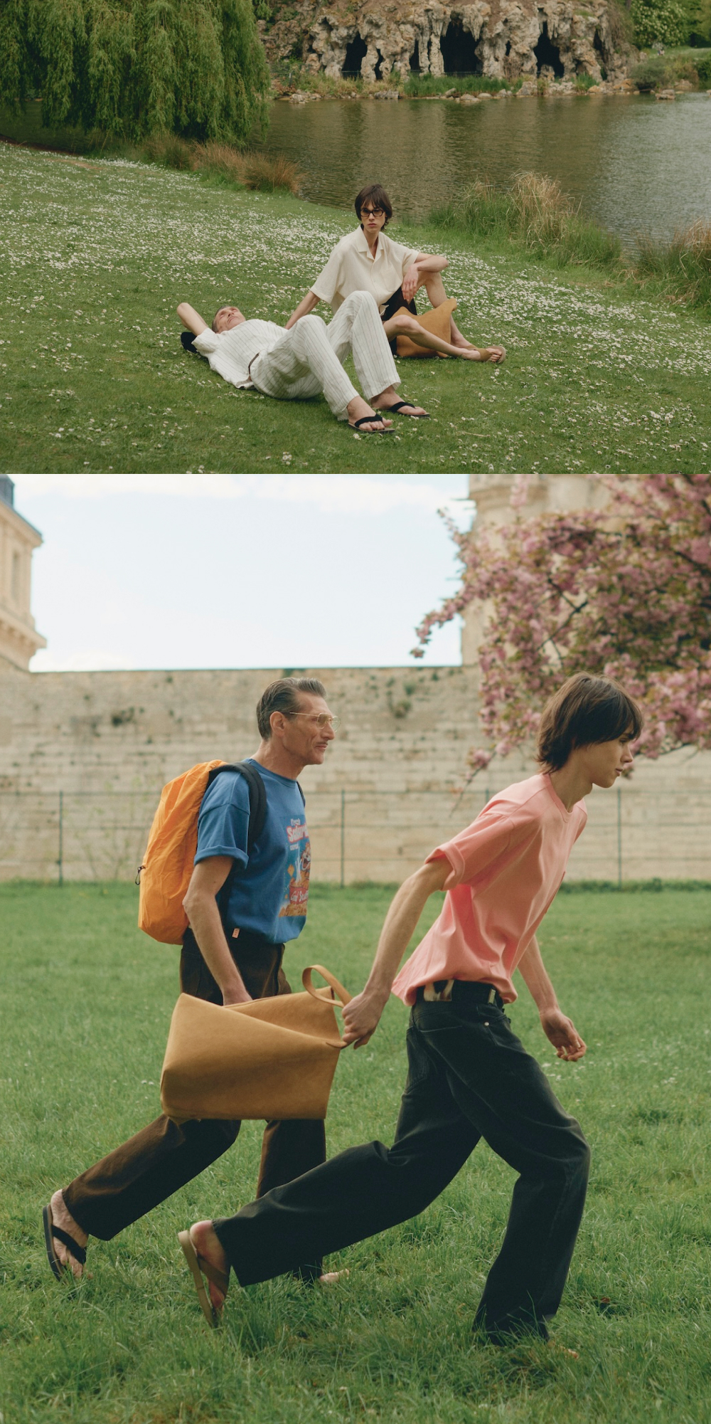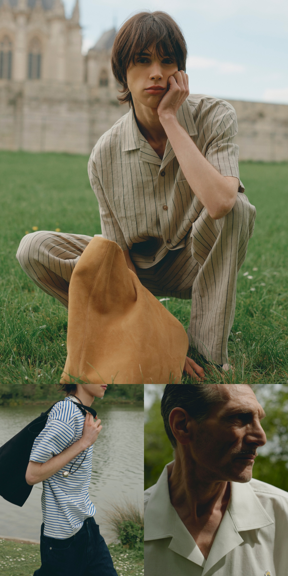 에스티유 백 레글런 스트라이프 린넨 셔츠 베이지