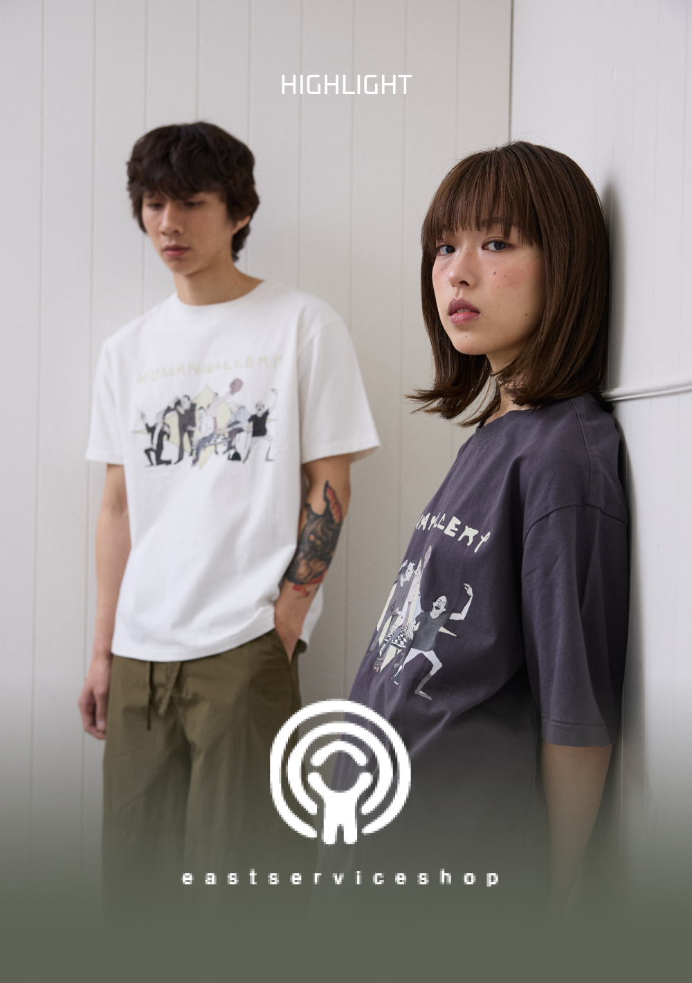 eastserviceshop Human Gallery Half T-Shirt Off White