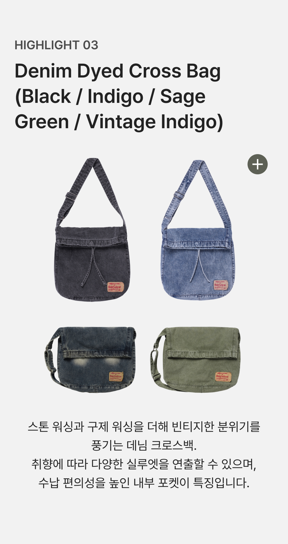 이스트서비스샵 데님 다이드 크로스백 세이지 그린