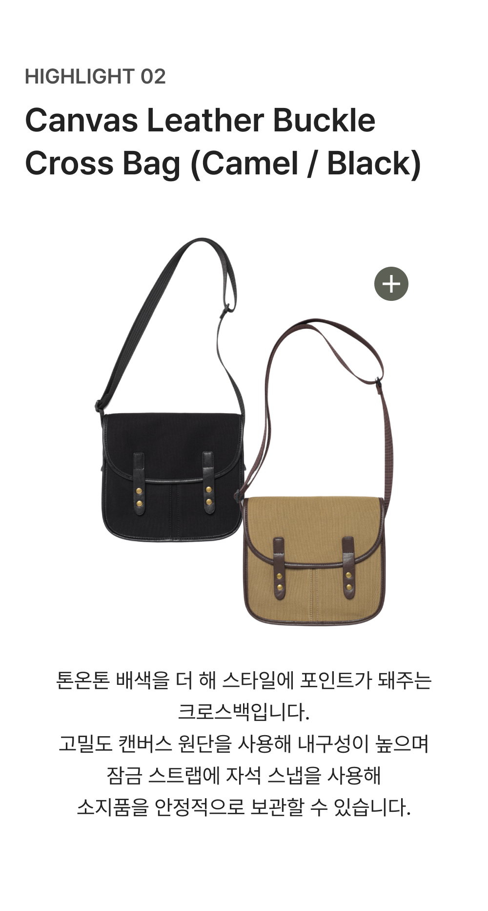 이스트서비스샵 캔버스 레더 버클 크로스백 카멜