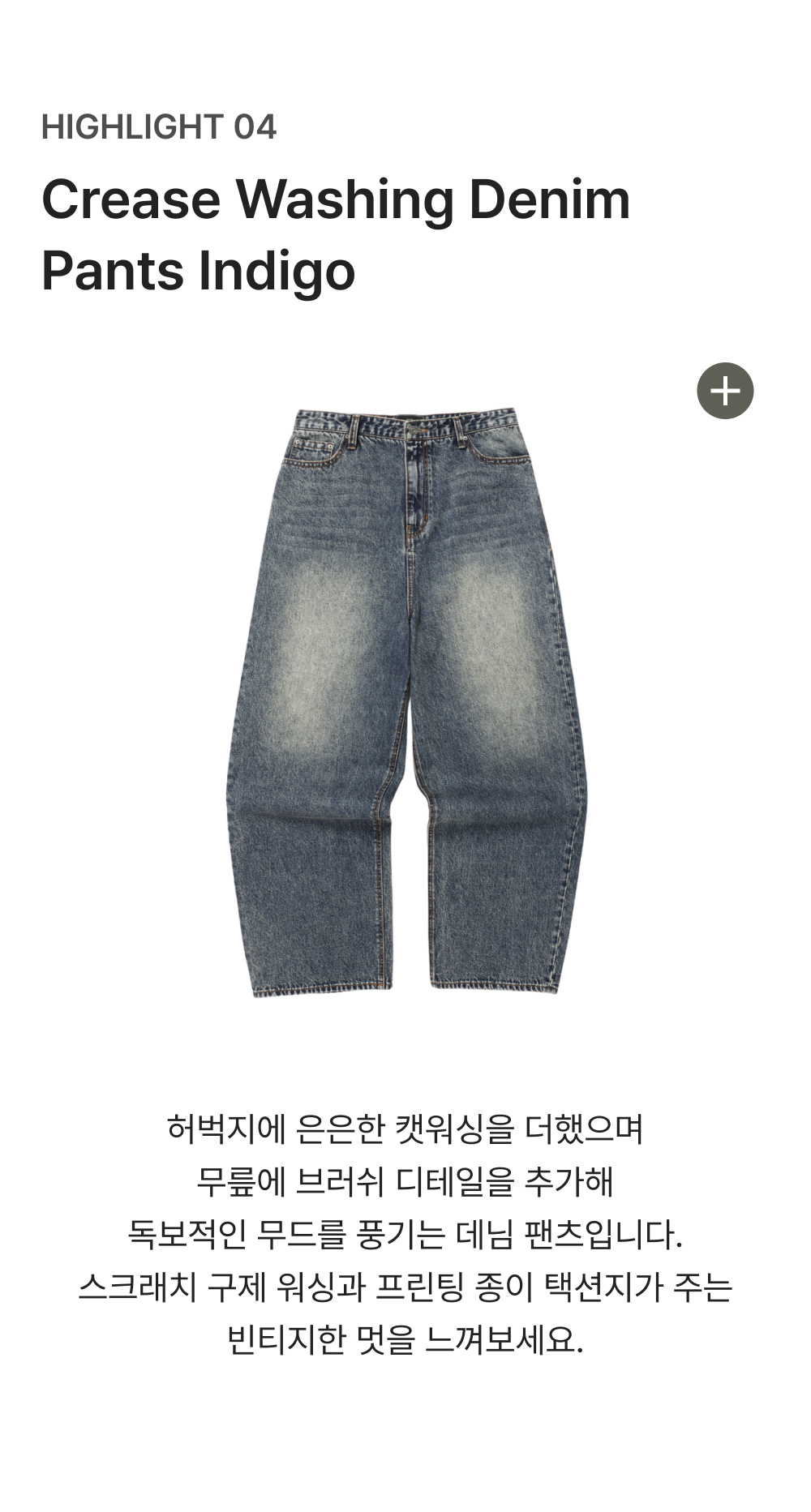 이스트서비스샵 크리즈 워싱 데님 팬츠 인디고