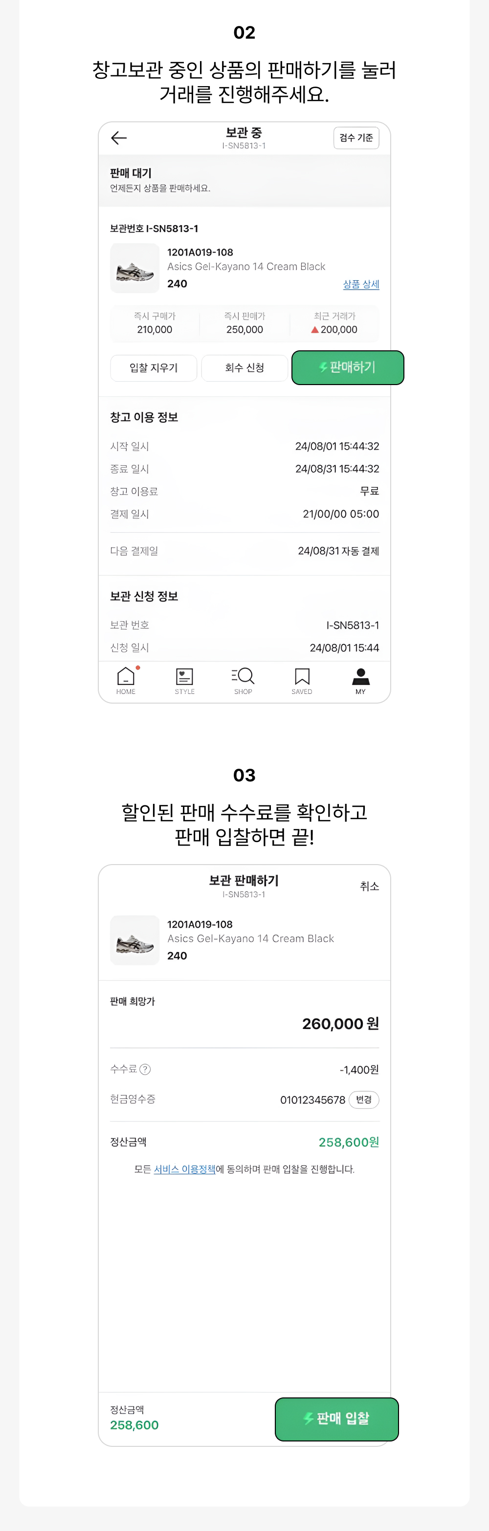 - 보관판매와 관련된 상세한 이용정책과 유의사항은 자주 묻는 질문에서 확인하시기 바랍니다.