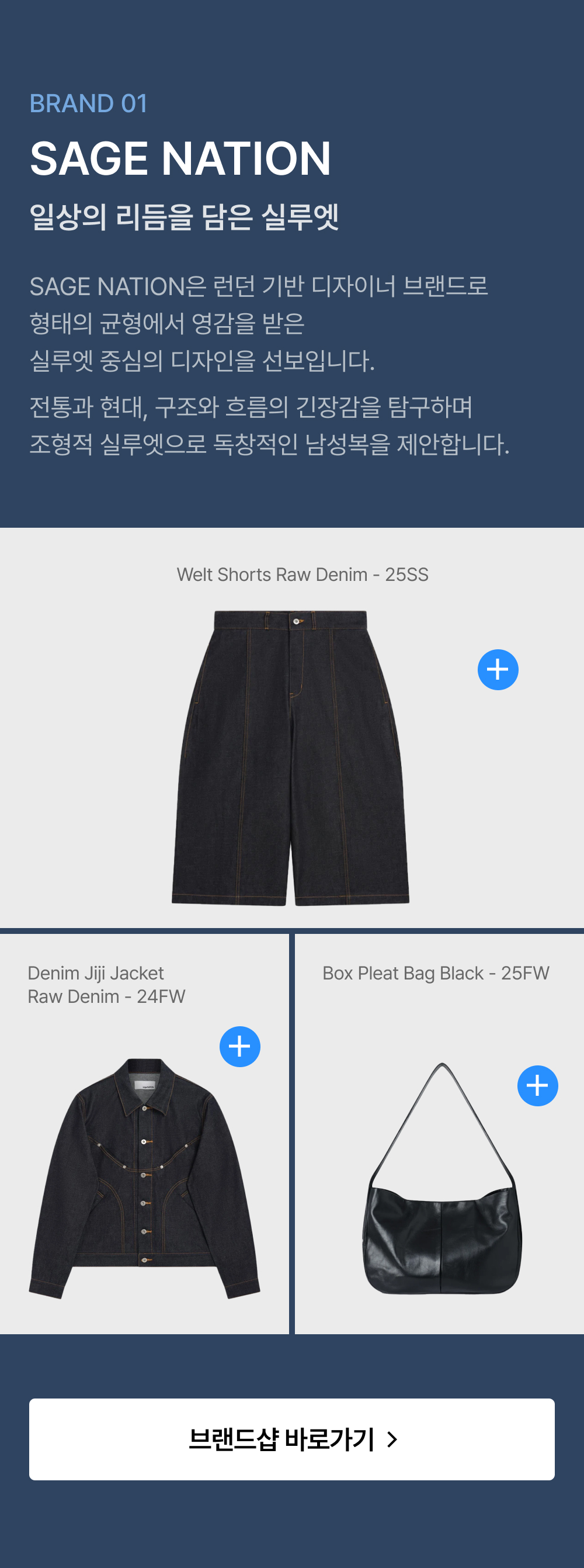 세이지 네이션 데님 지지 자켓 로우 데님 - 24FW
