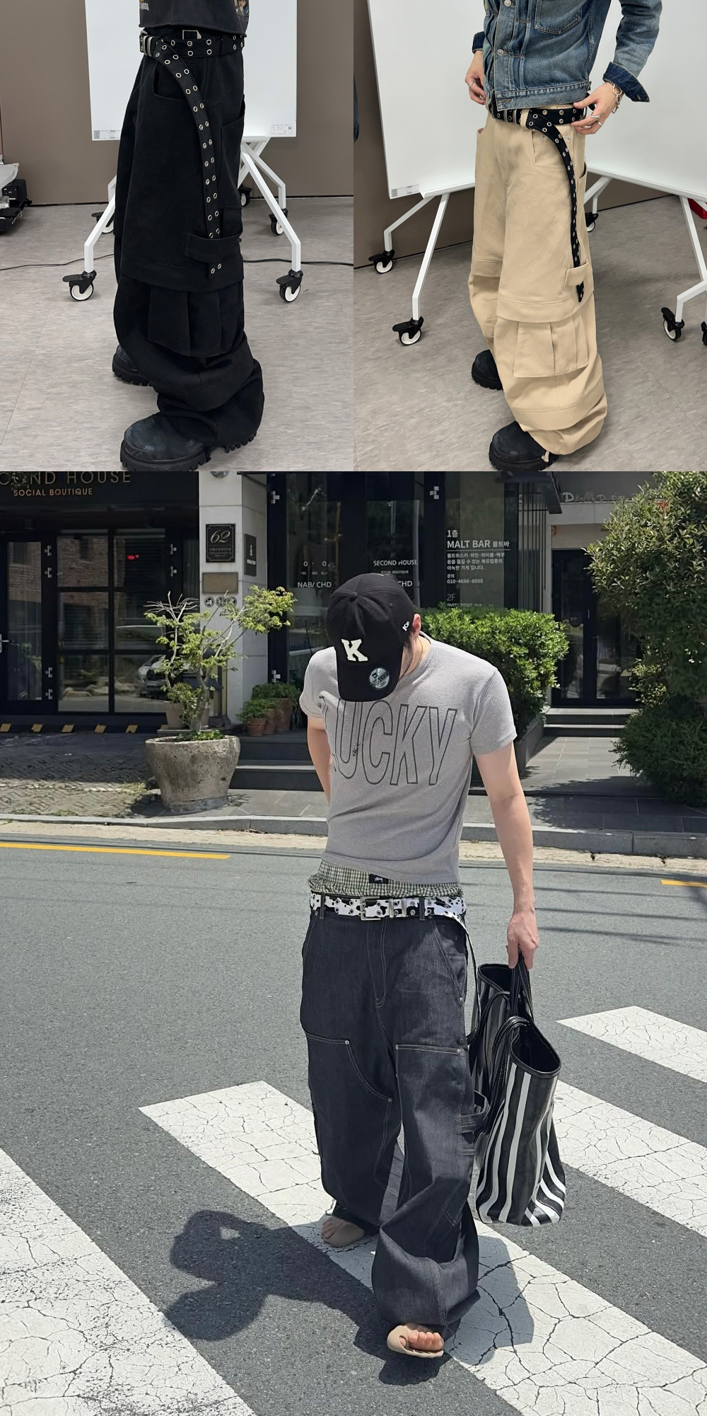 엠제이디 x 코인서울 콜라보 와이드 카고 스웻 팬츠