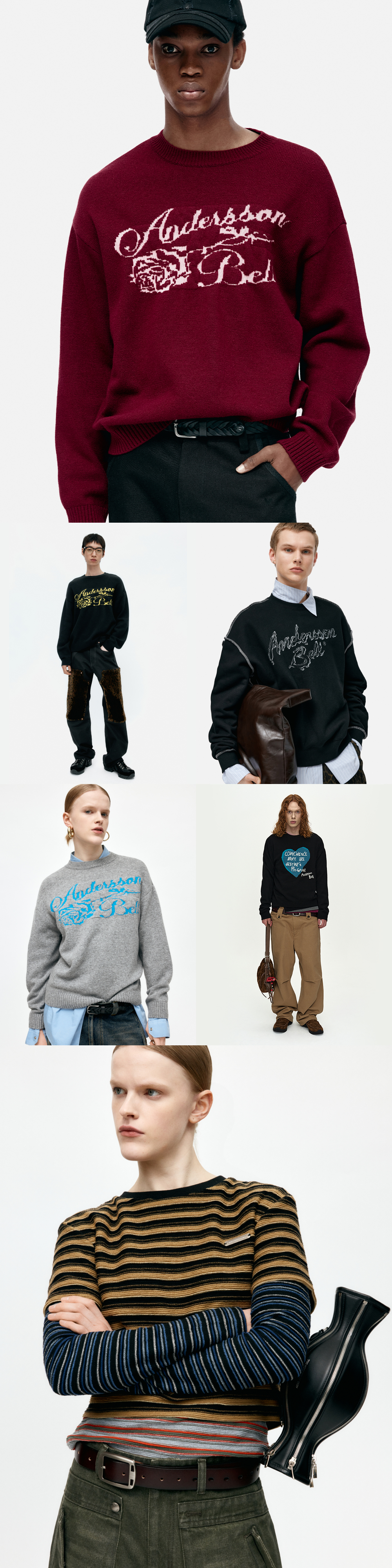 ADSB 앤더슨벨 유니섹스 스트라이프 레이어드 스웨터 블랙 브라운