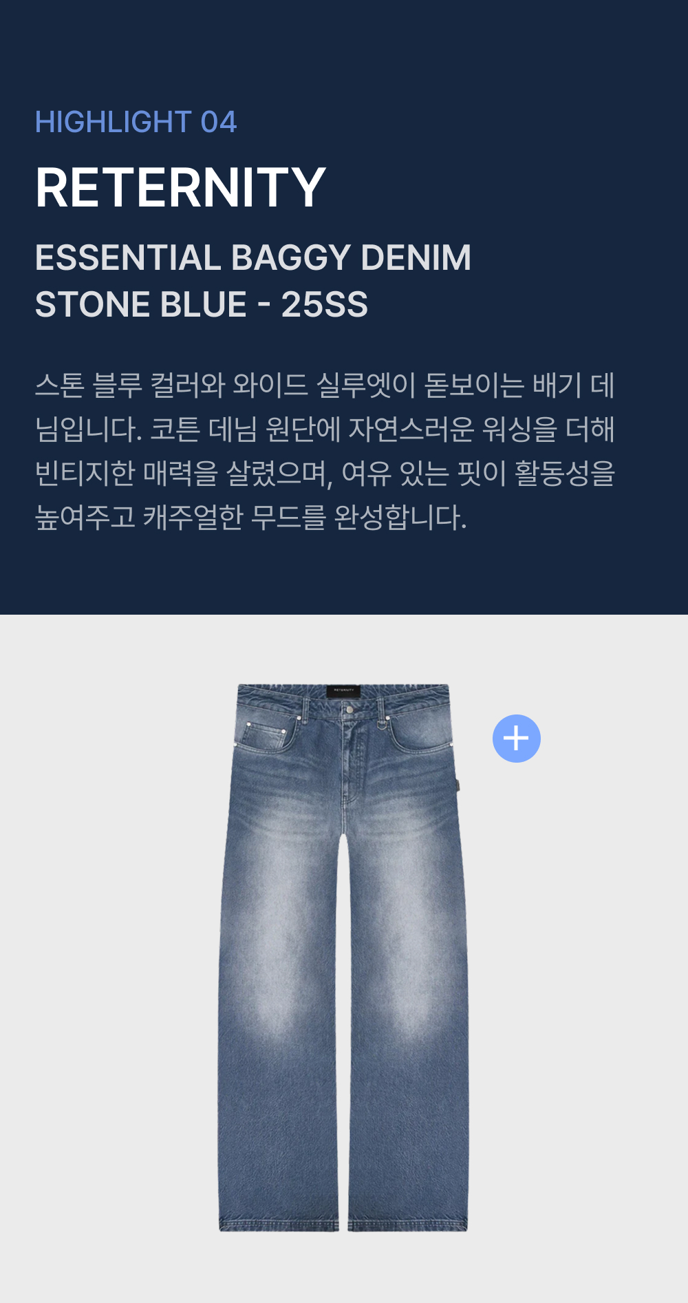리터니티 에센셜 배기 데님 워시드 블랙 - 25SS