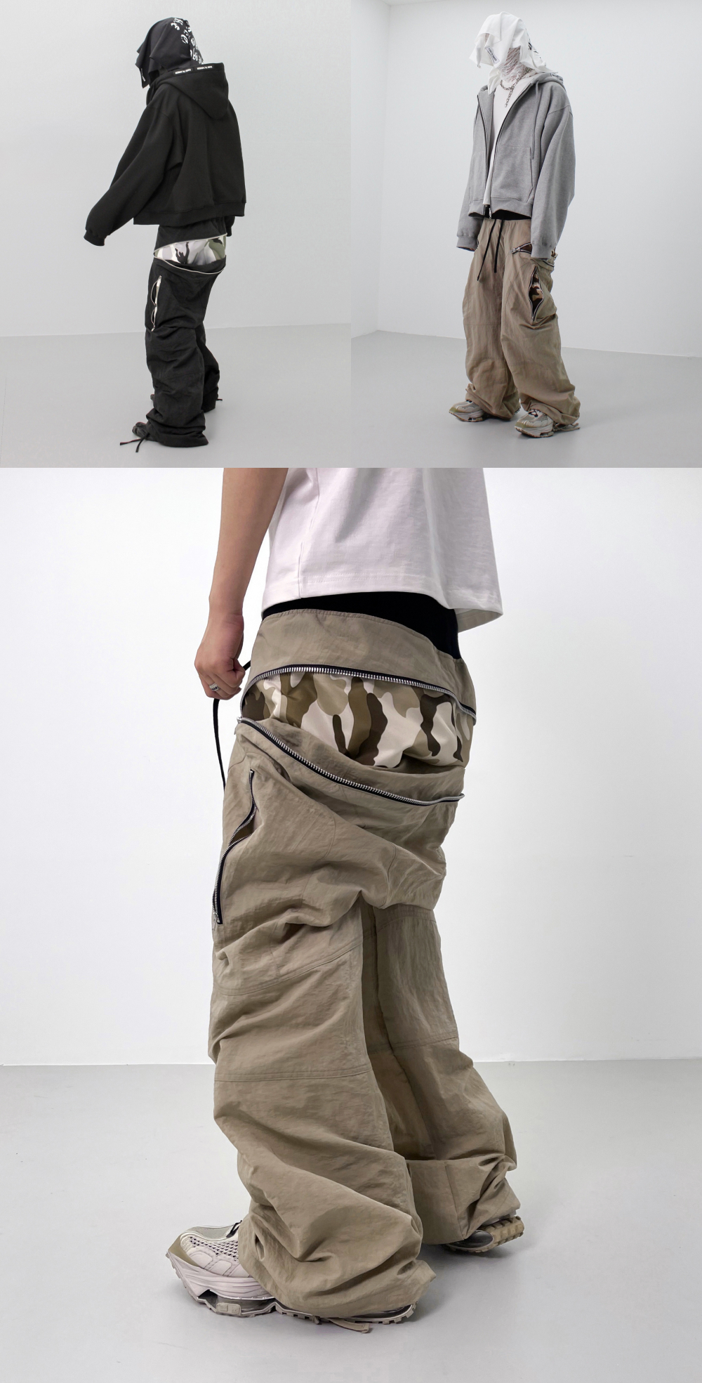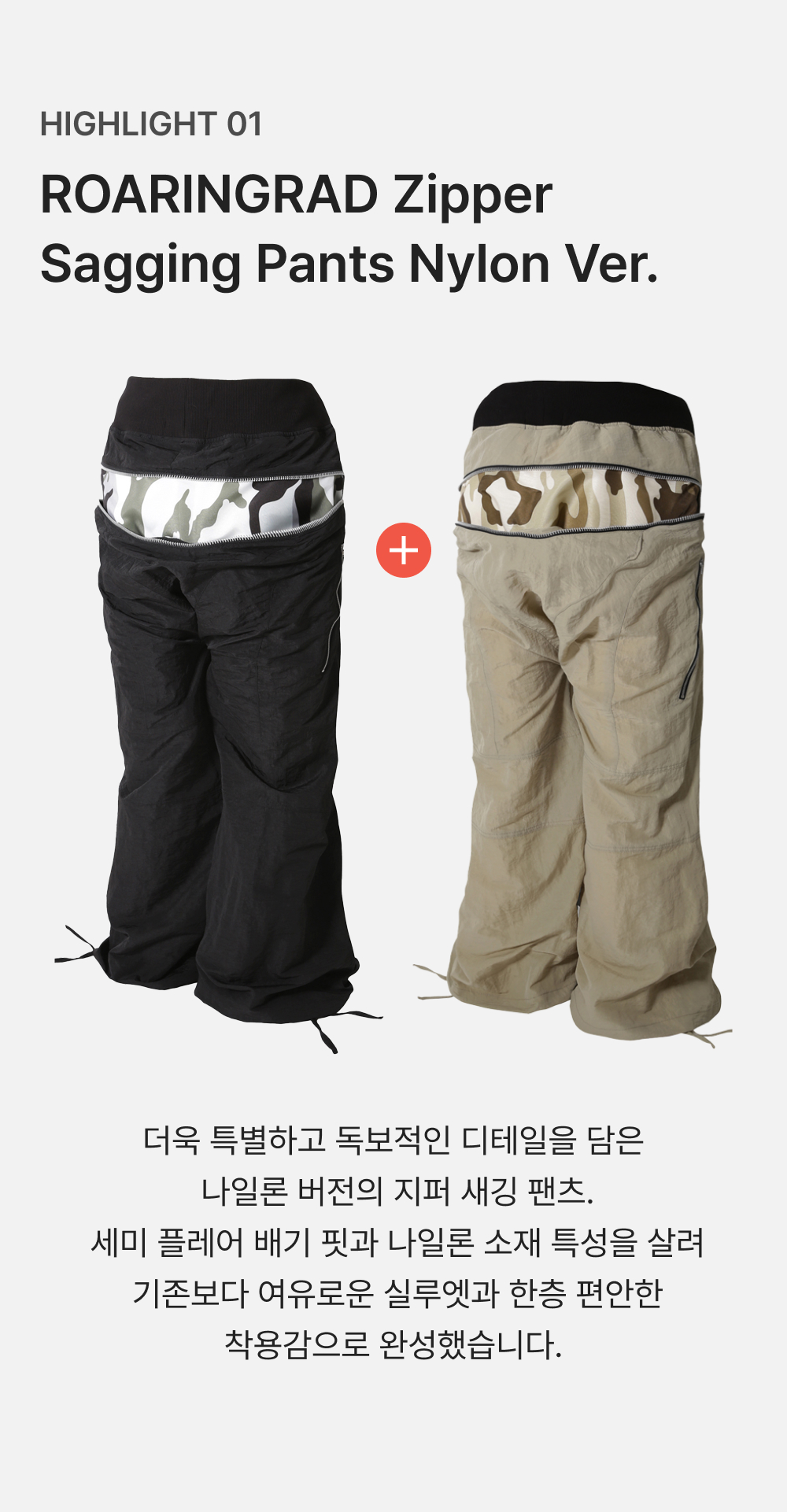 [KREAM 단독] ROARINGRAD Zipper Sagging Pants Nylon Ver. Beige