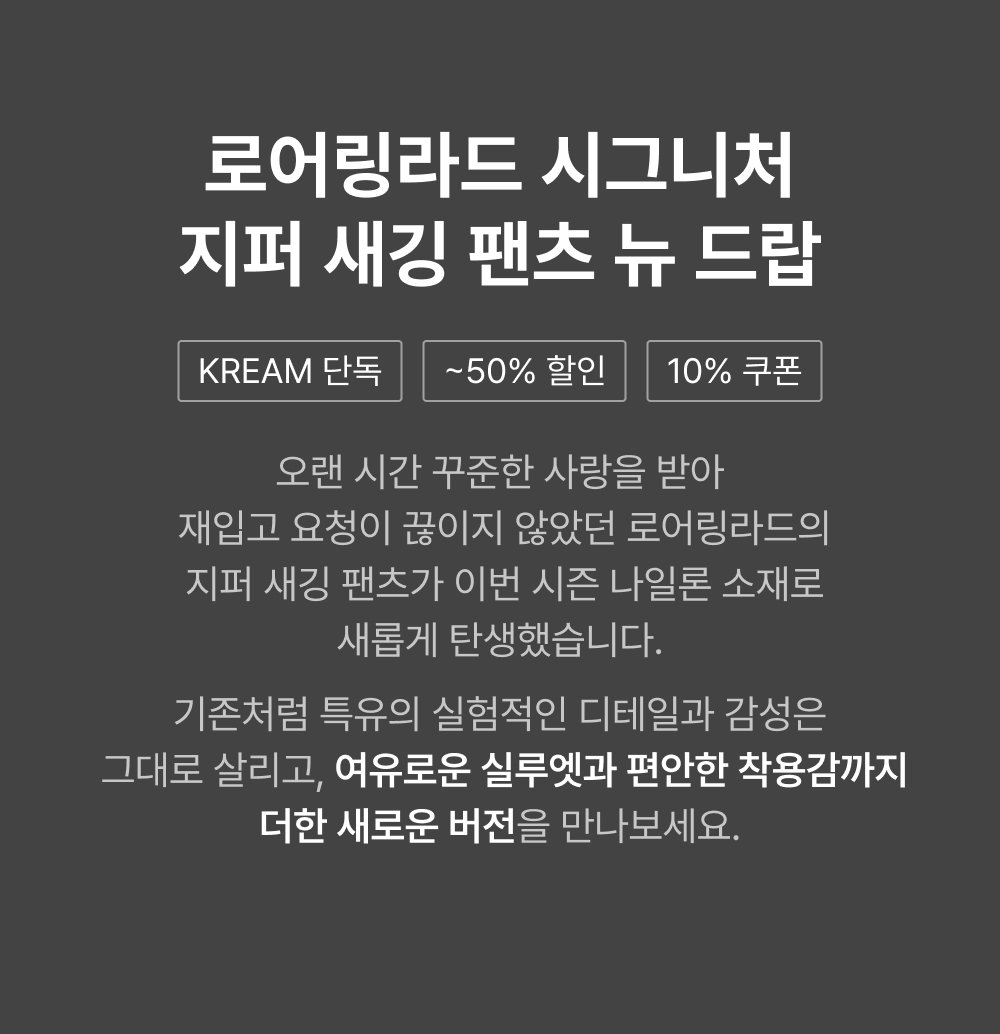 [KREAM 단독] 로어링라드 지퍼 새깅 팬츠 나일론 블랙