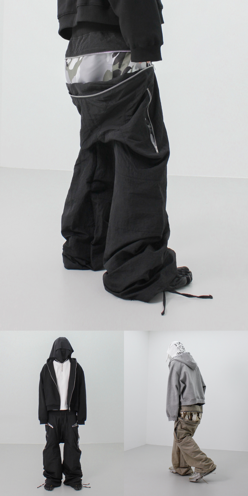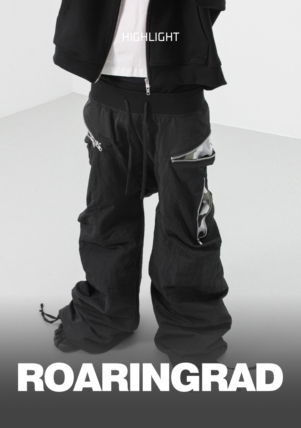 [KREAM 단독] ROARINGRAD Zipper Sagging Pants Nylon Ver. Black