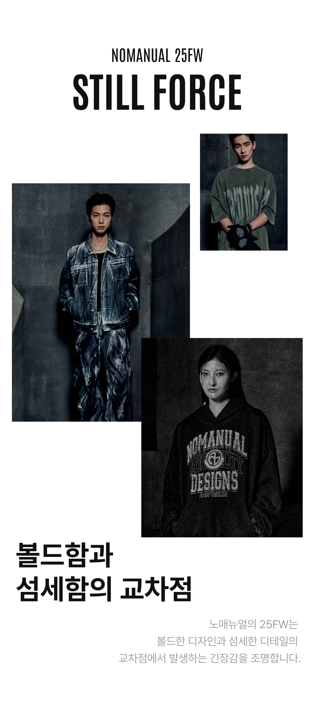 노매뉴얼 데미지드 후디 워시드 블랙