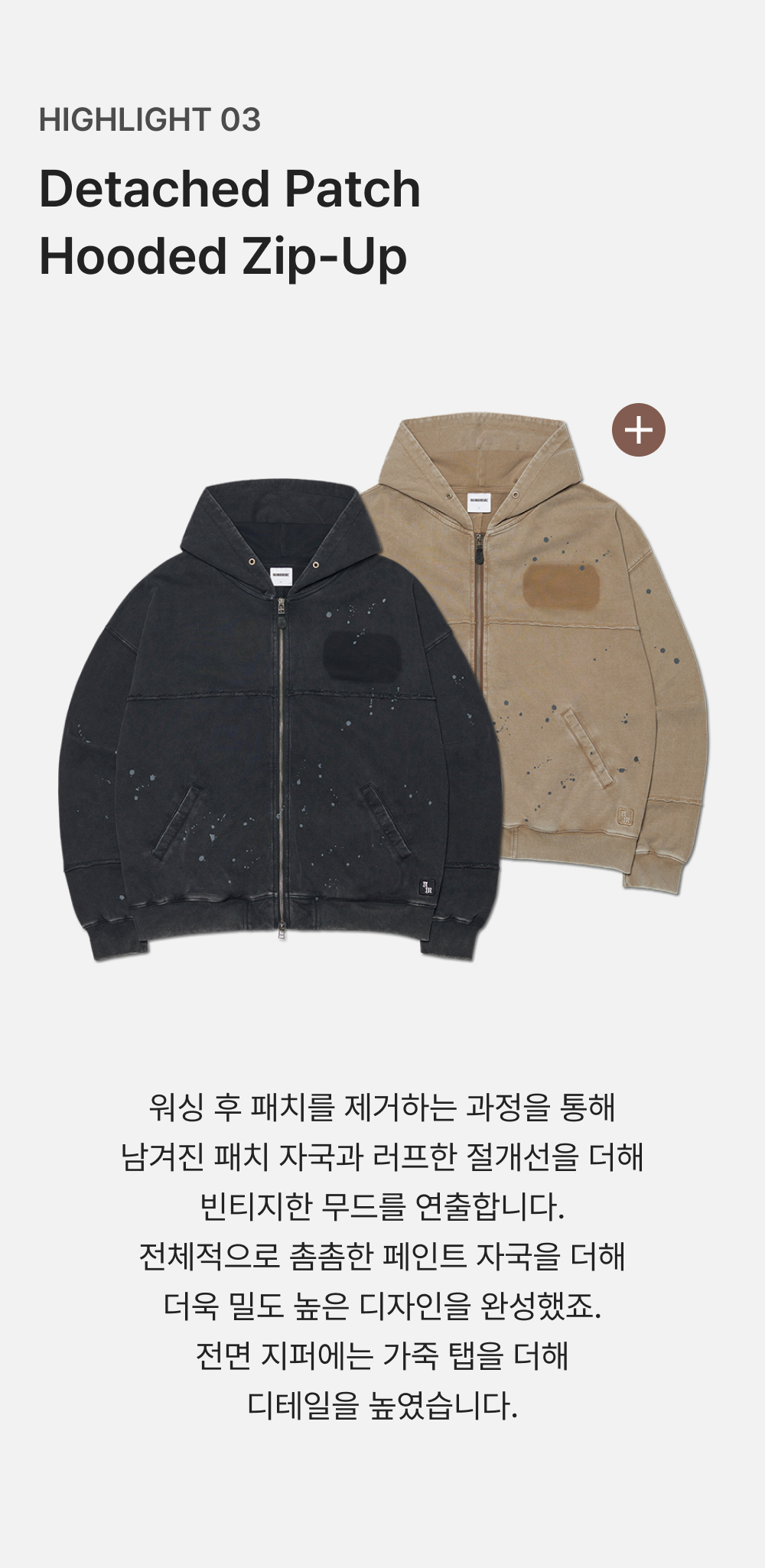 노매뉴얼 디태치드 패치 후디드 집업 워시드 브라운
