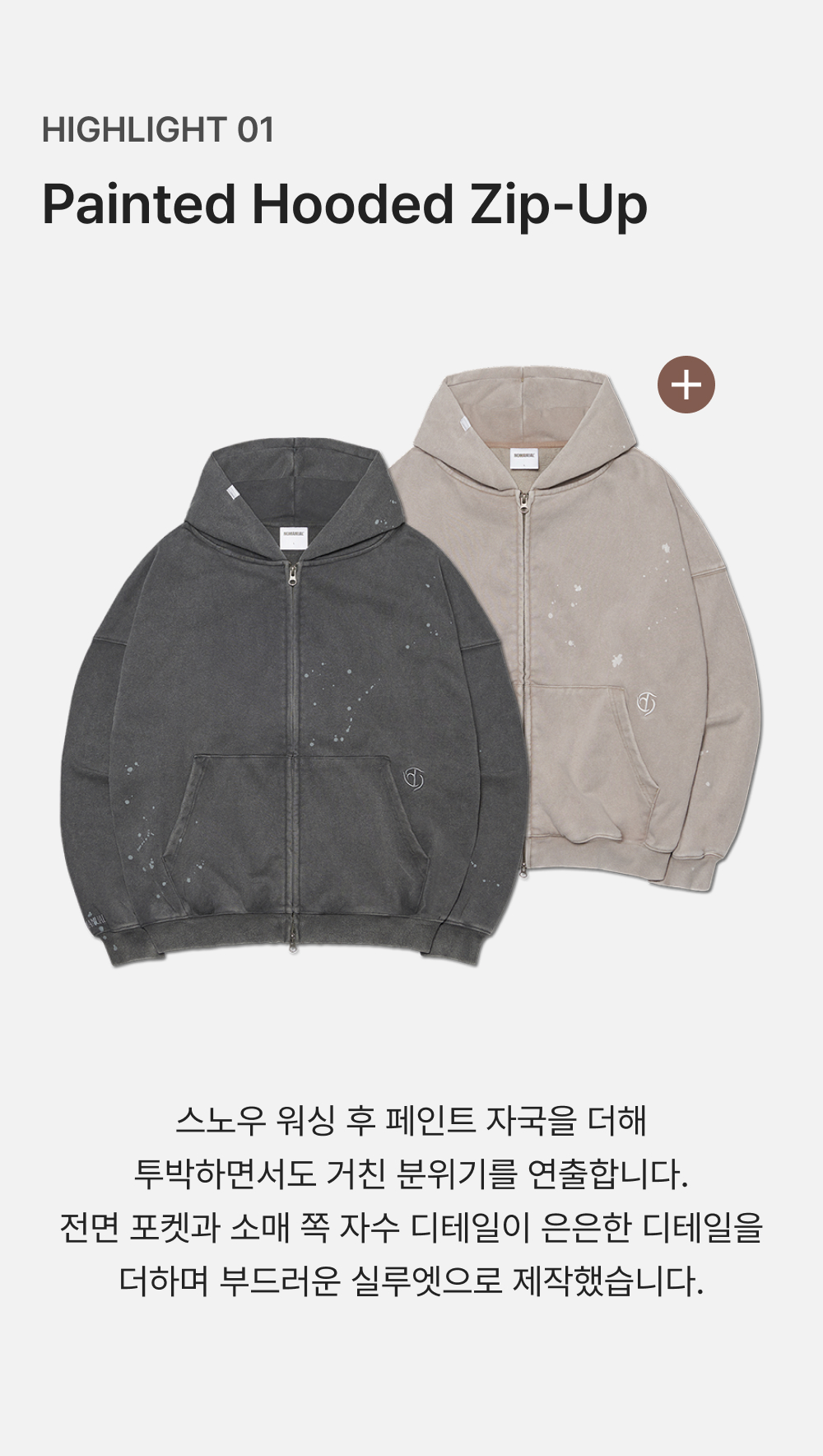 [KREAM 단독] 노매뉴얼 페인티드 후디드 집업 워시드 웜 그레이