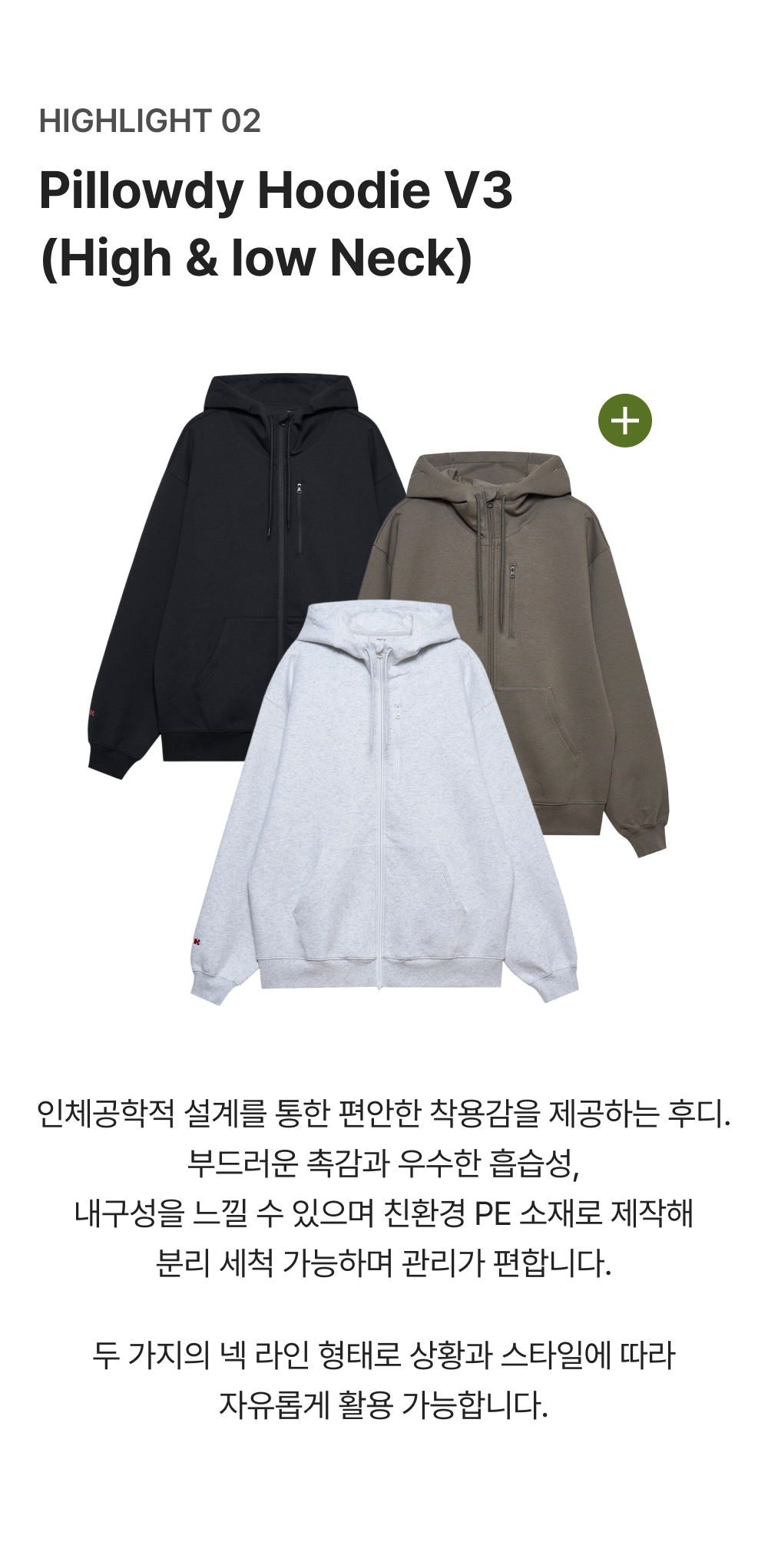 키크 필로우디 로우넥 후디 V3 올리브