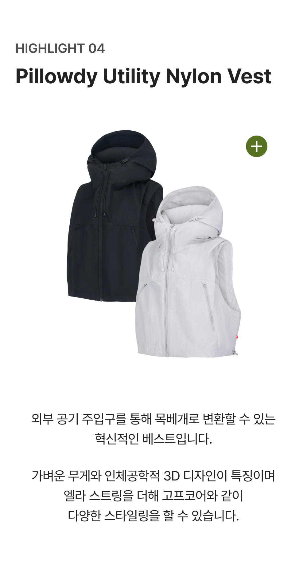 키크 필로우디 유틸리티 나일론 베스트 (안감X) 그레이