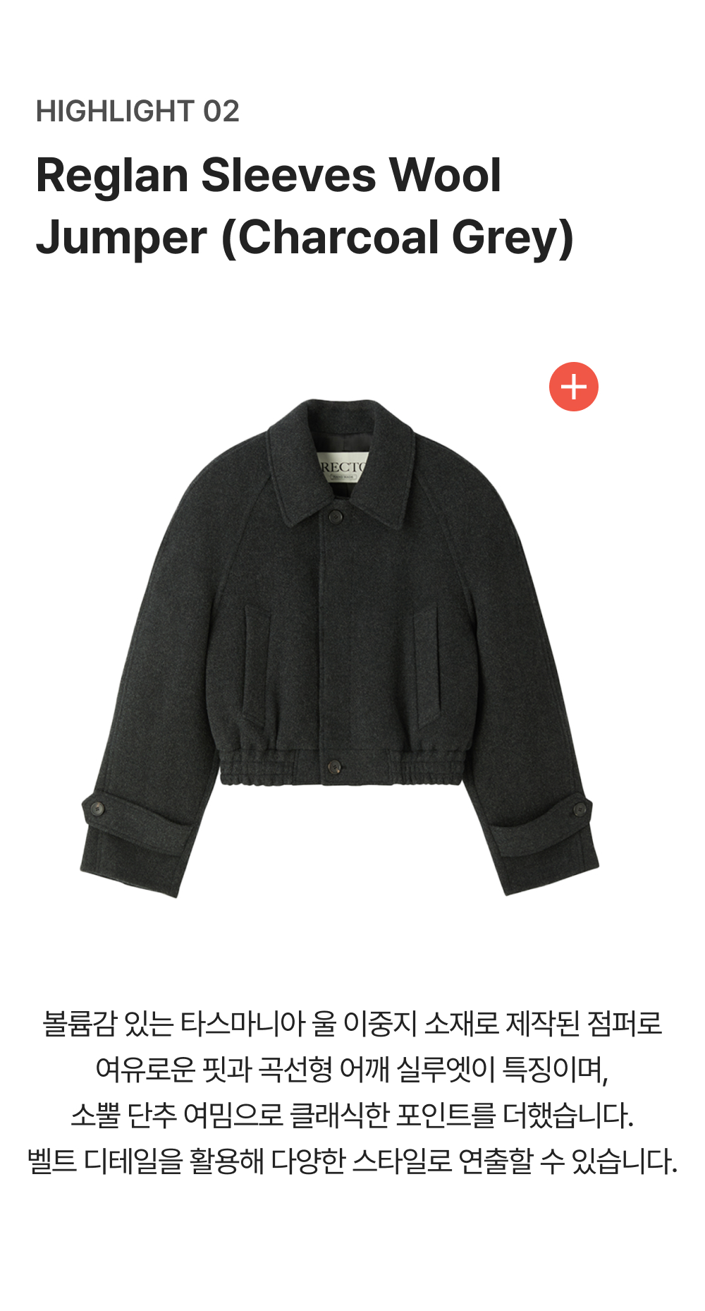 렉토 레글런 슬리브 울 점퍼 차콜 그레이