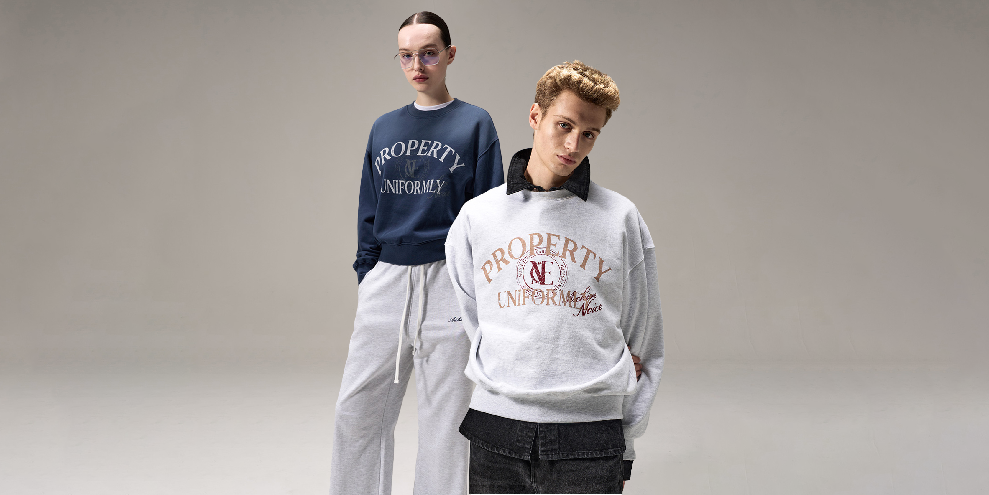 PROPERTY 캠퍼스 헤리티지를 담은 컬렉션 미국의 80년대 캠퍼스 유니폼과 스포츠 웨어에 노이스의 아이텐티티를 담은 새로운 컬렉션을 소개합니다. PROPERTY 심볼과 타이포그래피를 더한 티셔츠, 집업 후디, 스웻 셋업으로 구성된 데일리 웨어를 만나보세요.