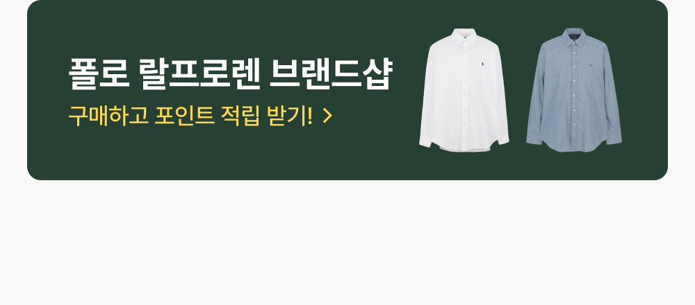 - 본 프로모션의 적립금은 폴로 랄프로렌 상품의 “총 결제 금액” 기준으로 최대 총 30% 적립됩니다. (기본 3% + 추가 최대 27%)