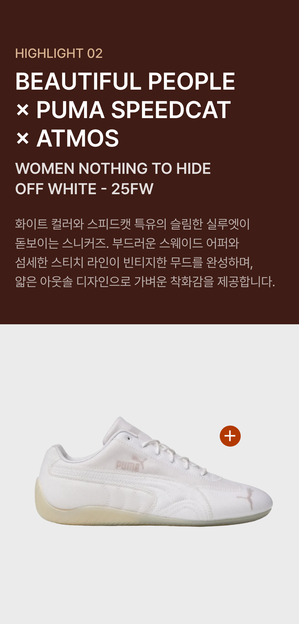 뷰티풀 피플 퓨마 스피드캣 아트모스 우먼 낫띵 투 하인드 오프 화이트 - 25FW