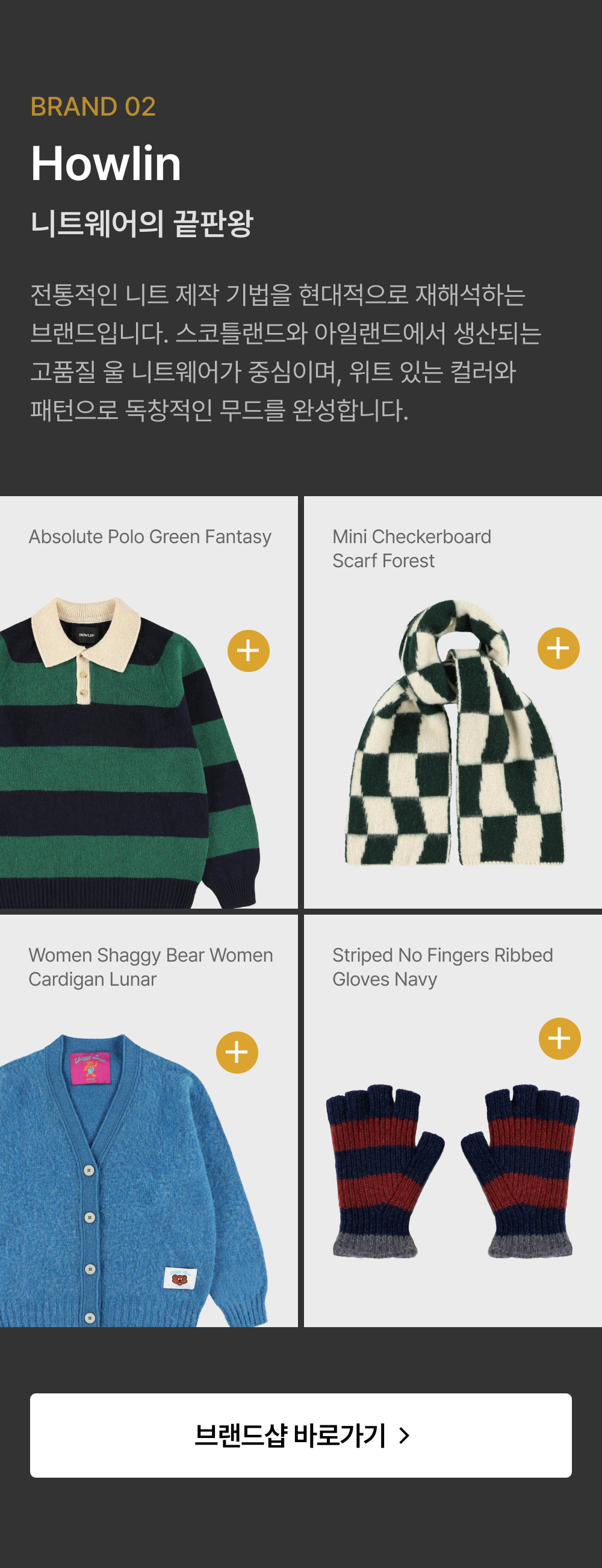 하울린 스트라이프 노 핑거 립 글러브 우드 - 25FW