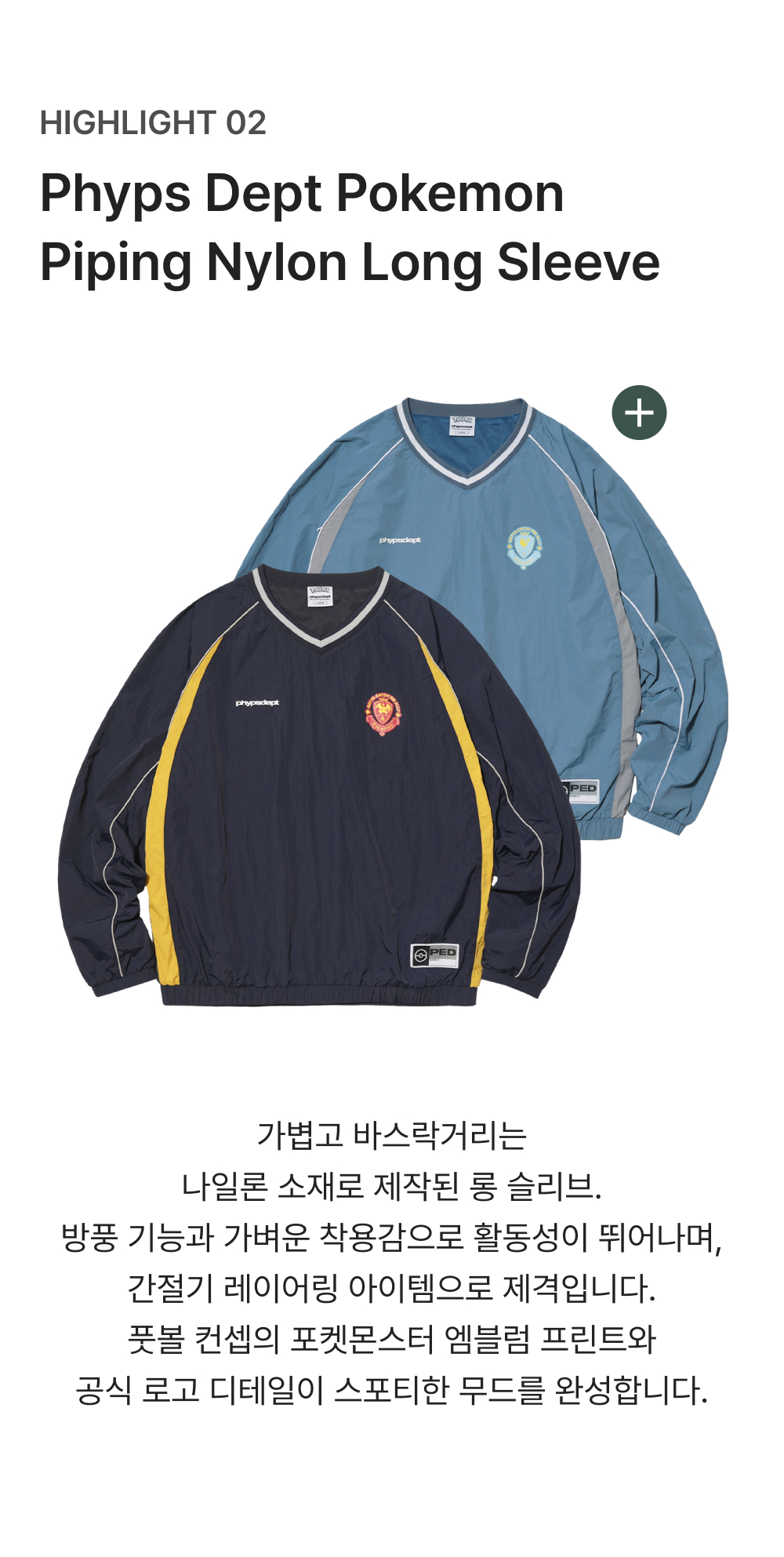 피지컬 디파트먼트 포켓몬 파이핑 나일론 롱 슬리브 네이비