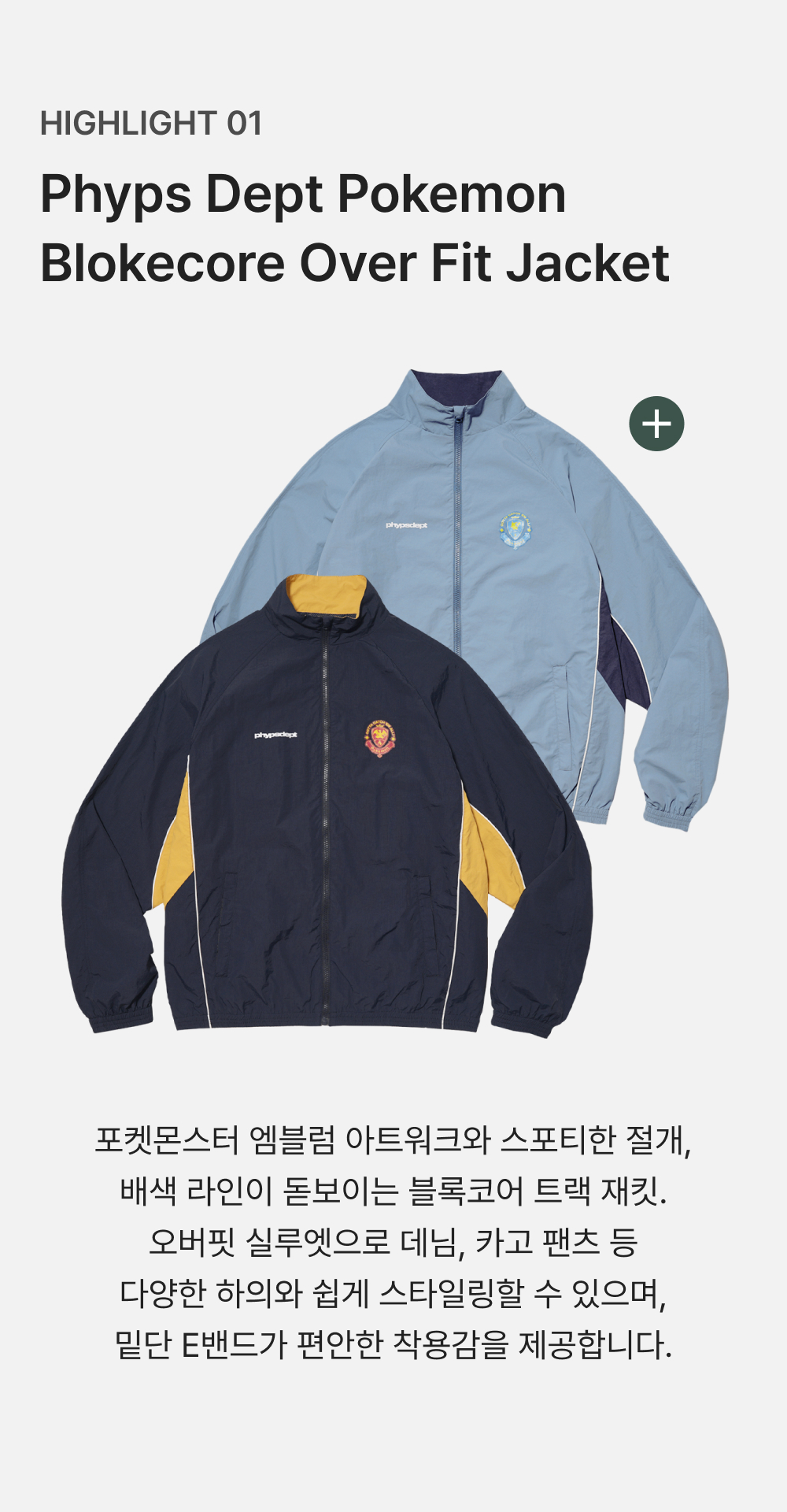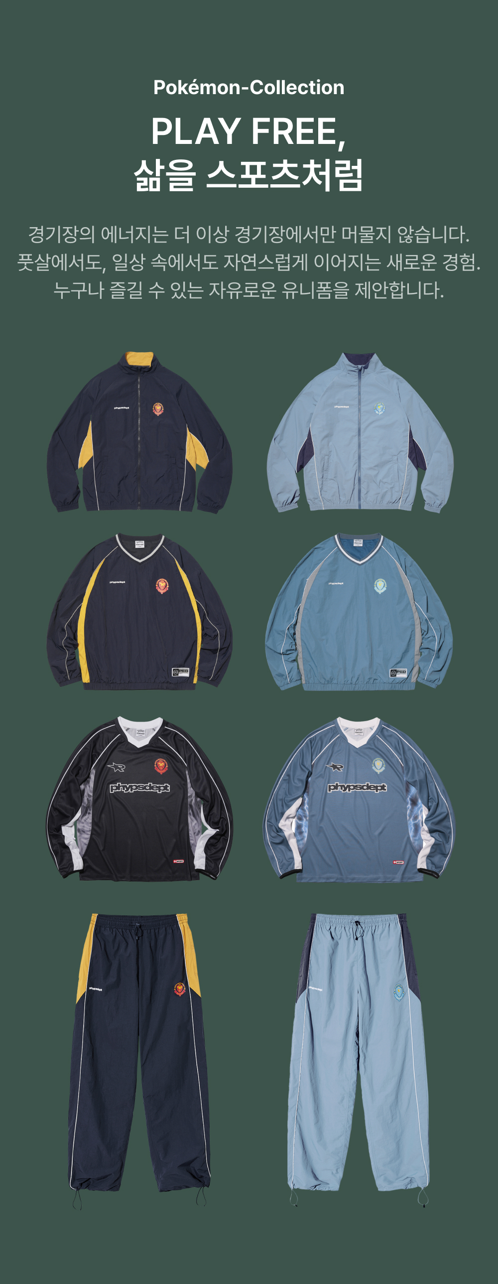 피지컬 디파트먼트 포켓몬 블록코어 오버핏 자켓 블루