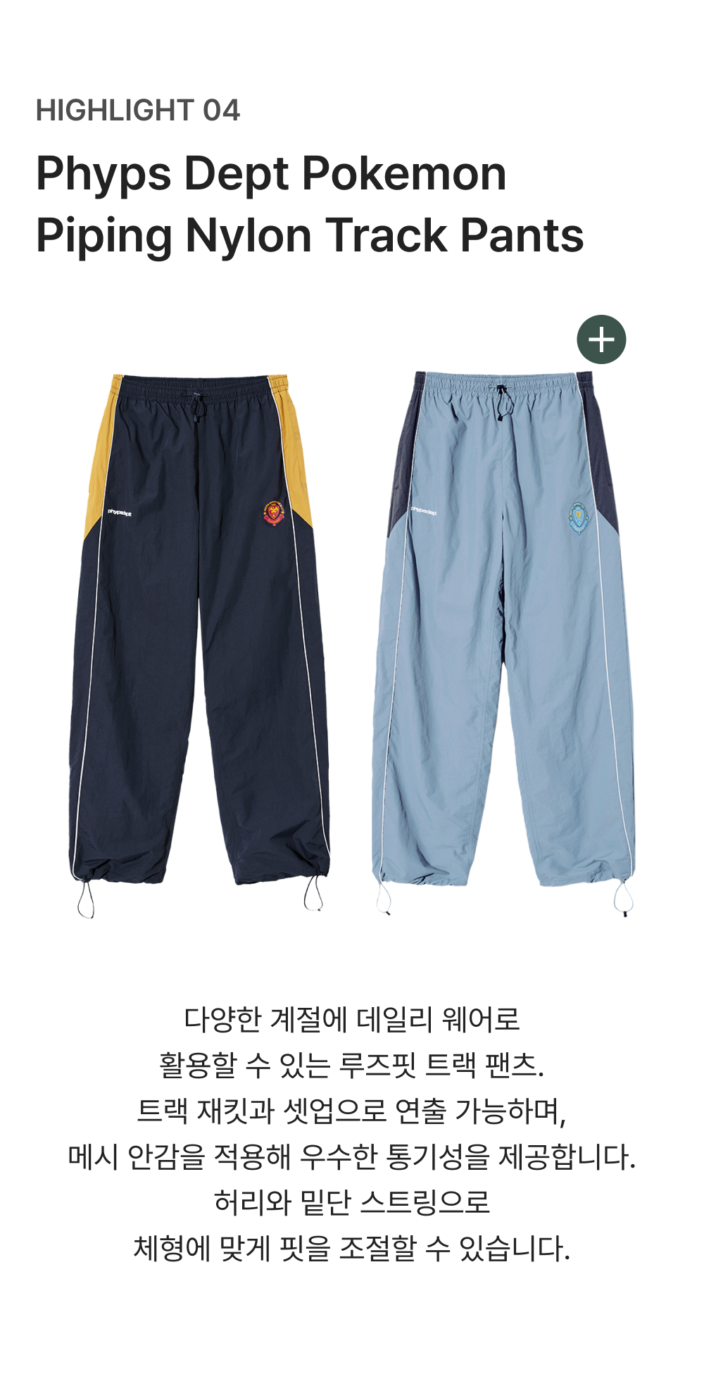 피지컬 디파트먼트 포켓몬 파이핑 나일론 트랙팬츠 네이비