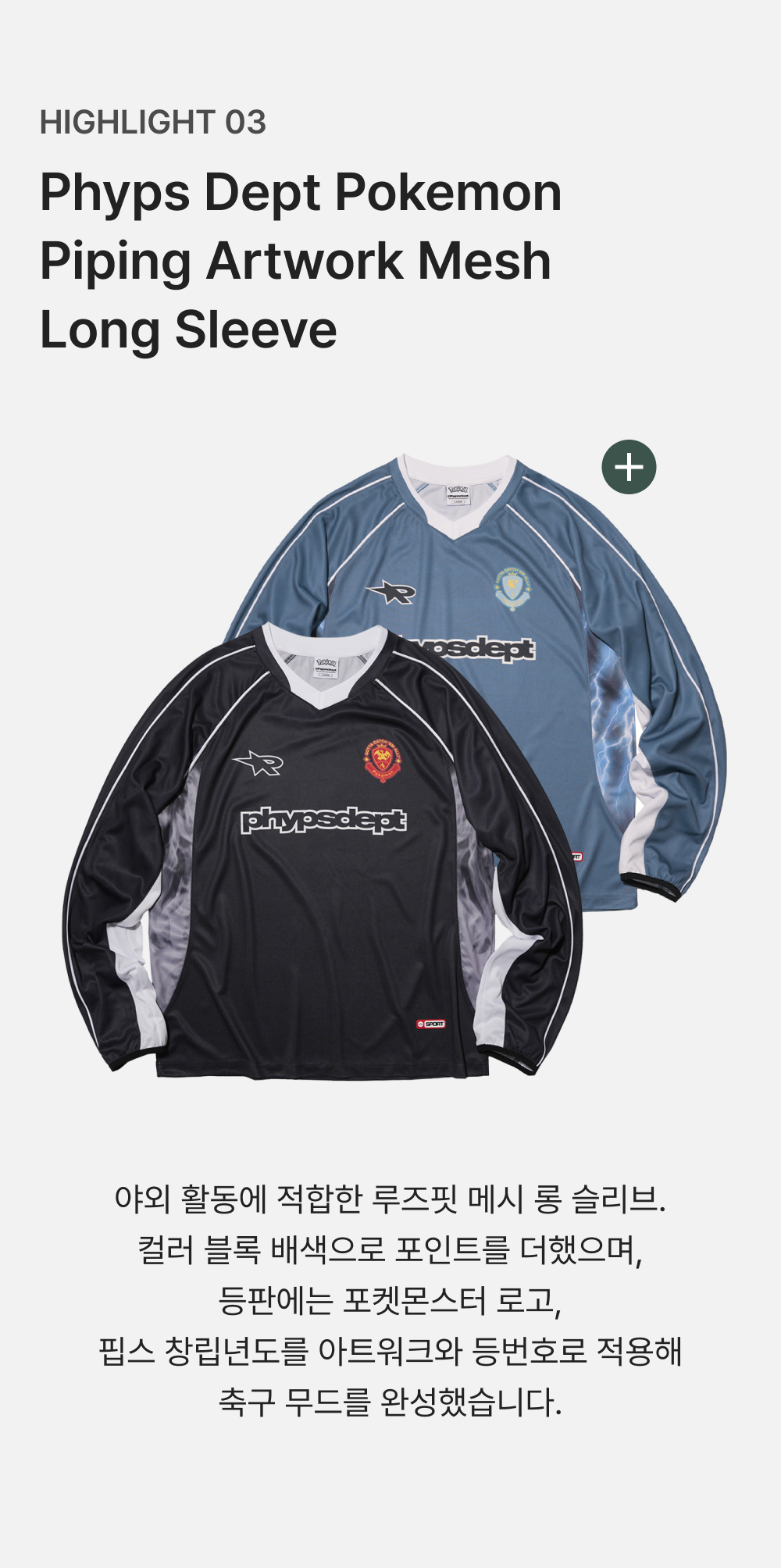 피지컬 디파트먼트 포켓몬 파이핑 아트웍 메쉬 롱슬리브 블루