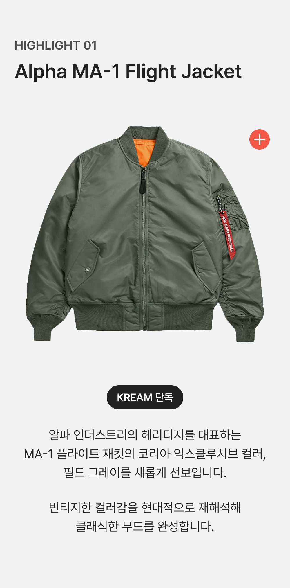 [KREAM 단독] 알파 인더스트리 알파 MA-1 플라이트 자켓 필드 그레이