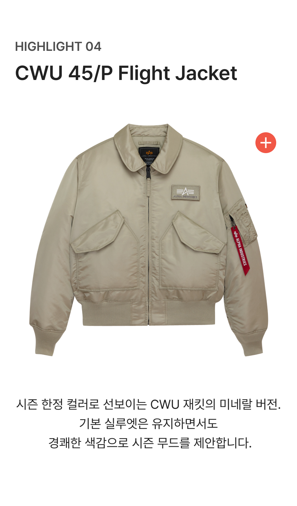 알파 인더스트리 CWU 45/P 플라이트 자켓 빈티지 카키